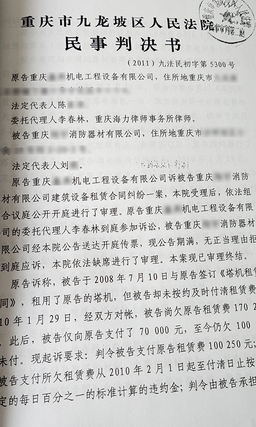 重庆某机电工程设备公司与某消防建材公司租赁合同纠纷